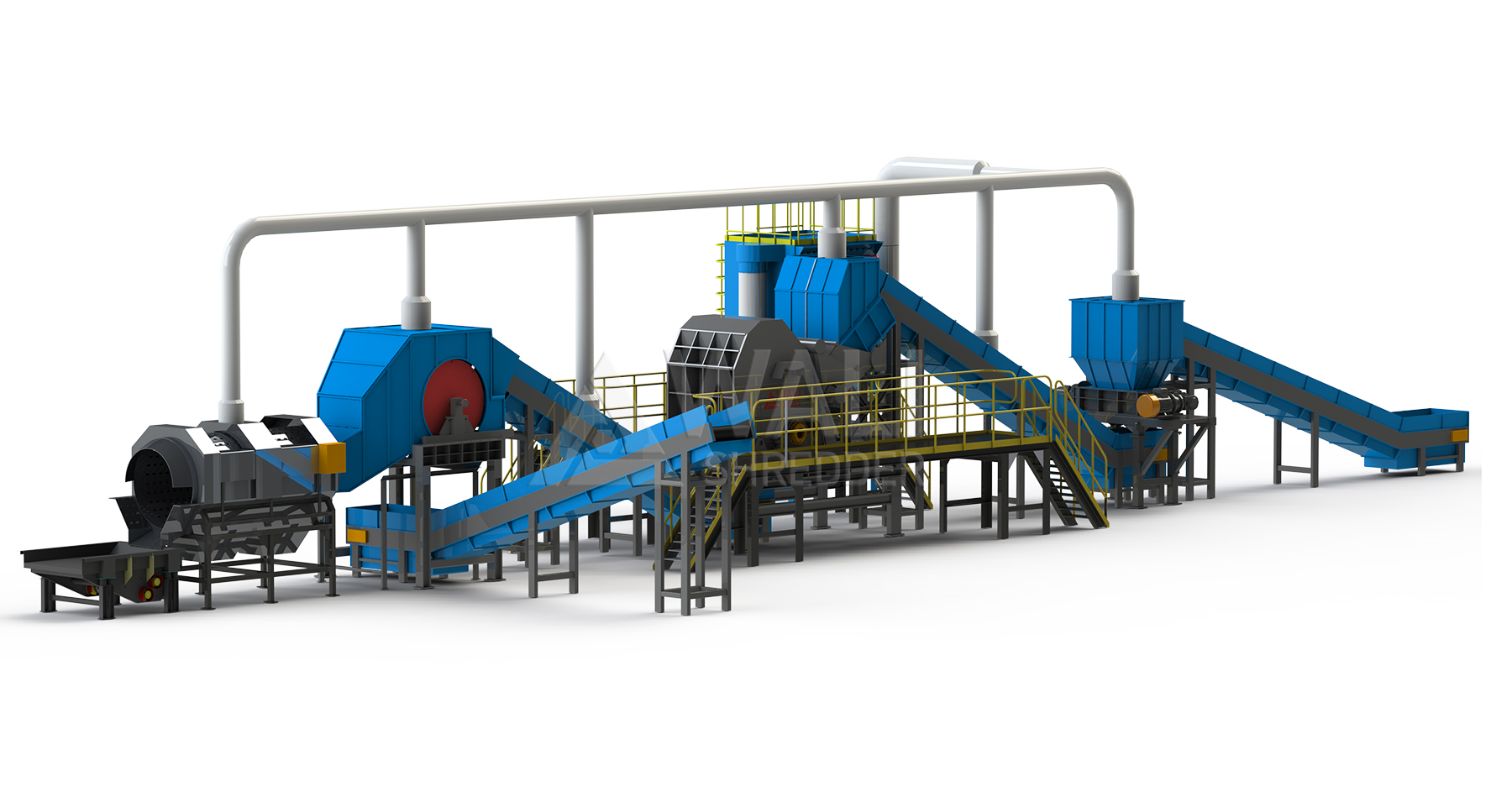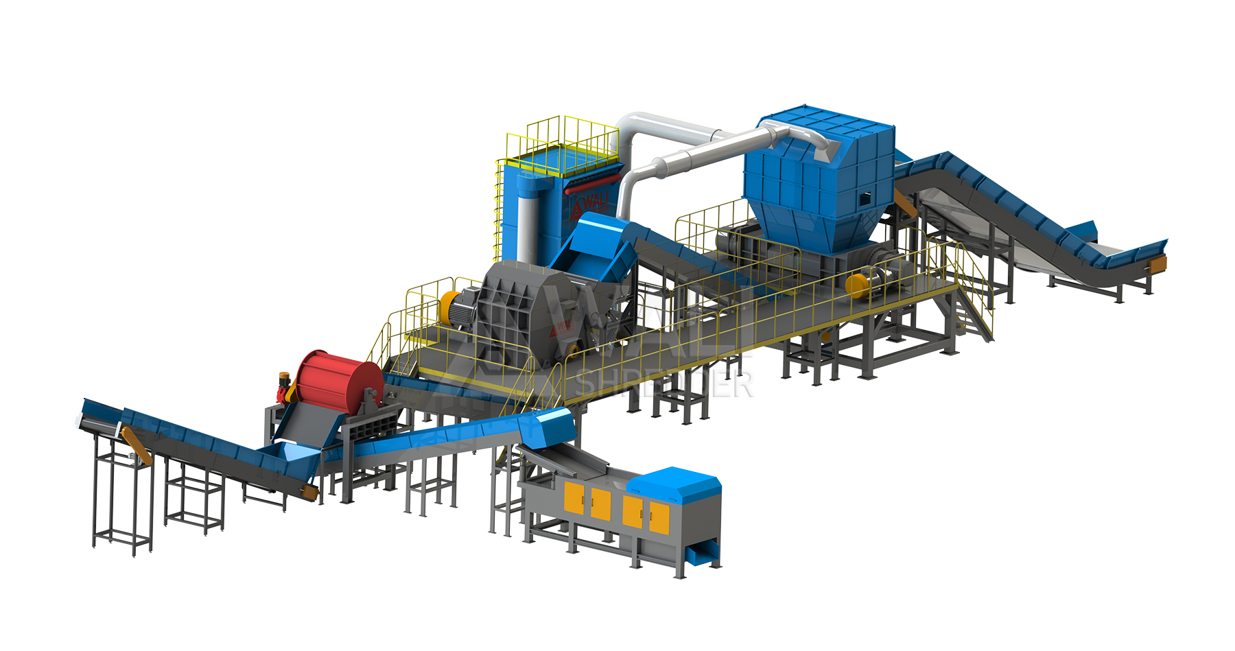 ? ? ? 瓦力環(huán)保報(bào)廢汽車破碎解決方案,是針對(duì)報(bào)廢汽車外殼、廢舊金屬進(jìn)行破碎回收的設(shè)備,便于回爐再生循環(huán)利用。主要由專用撕碎機(jī)進(jìn)行粗碎,然后經(jīng)過(guò)錘式破碎機(jī)進(jìn)行破碎處理,在破碎時(shí)采用除塵設(shè)備除去輕質(zhì)物料以及粉塵,通過(guò)強(qiáng)磁設(shè)備把含鐵為主的金屬分離出來(lái)。